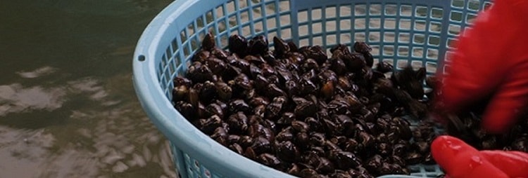 青森県十三湖(じゅうさんこ)と、小川原湖(おがわらこ)でとれた殻付きしじみを使用しています。
