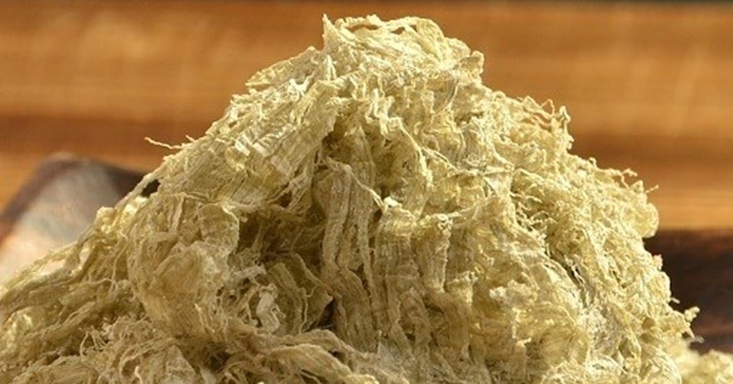 とろろ昆布は、何枚もの昆布を重ねてその側面を削ったものです。削ったものを広げてみると木目調の模様が見えます。その筋が一枚の昆布の側面です。細く糸状に削れているので、手でほぐせばふわふわとちぎれます。何枚もの昆布を皮ごと削っているので、深い味わいが楽しめます。